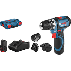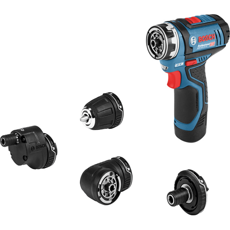 Akku-Bohrschrauber GSR 12V-15 FC, Redefine your limits – Flexibilität durch fünf Lösungen in einem einzigen Kompaktwerkzeug., Vielseitig: fünf Optionen zur Wahl – Bohrschrauber mit magnetischem Bit-Halter, arretierbarem Bit-Halter, Bohrfutter, Winkelaufsatz und Exzenteraufsatz, Kompakt: perfekt für schwer zugängliche Bereiche – dank der extrem kompakten Bauform, Leistungsstark: überzeugende Leistung – dank 30 Nm Drehmoment, L-BOXX 102 (1 600 A01 2FZ). Bohrfutteraufsatz GFA 12-B (1 600 A00 F5H). Bithalteraufsatz GFA 12-X (1 600 A00 F5J). Winkelaufsatz GFA 12-W (1 600 A00 F5K). Exzenteraufsatz GFA 12-E (1 600 A00 F5L). Schnellladegerät GAL 12V-40 Professional (1 600 A01 9R3). 2 x Akku GBA 12V 2.0Ah (1 600 Z00 02X). 1/2 L-BOXX-Einlage für Gerät und Ladegerät (1 600 A00 2UV). 1/2 L-BOXX-Einlage 12-V-Adapter (1 600 A01 1UW)
