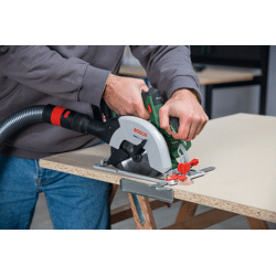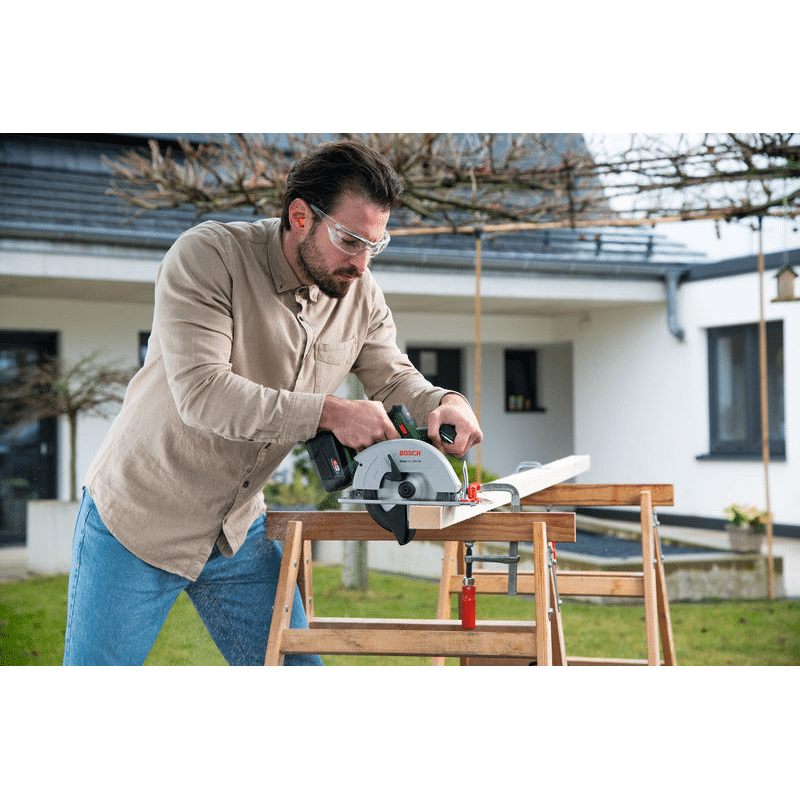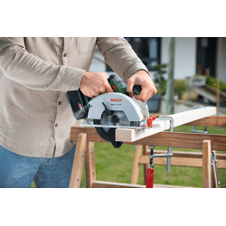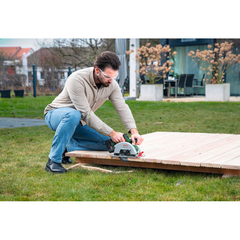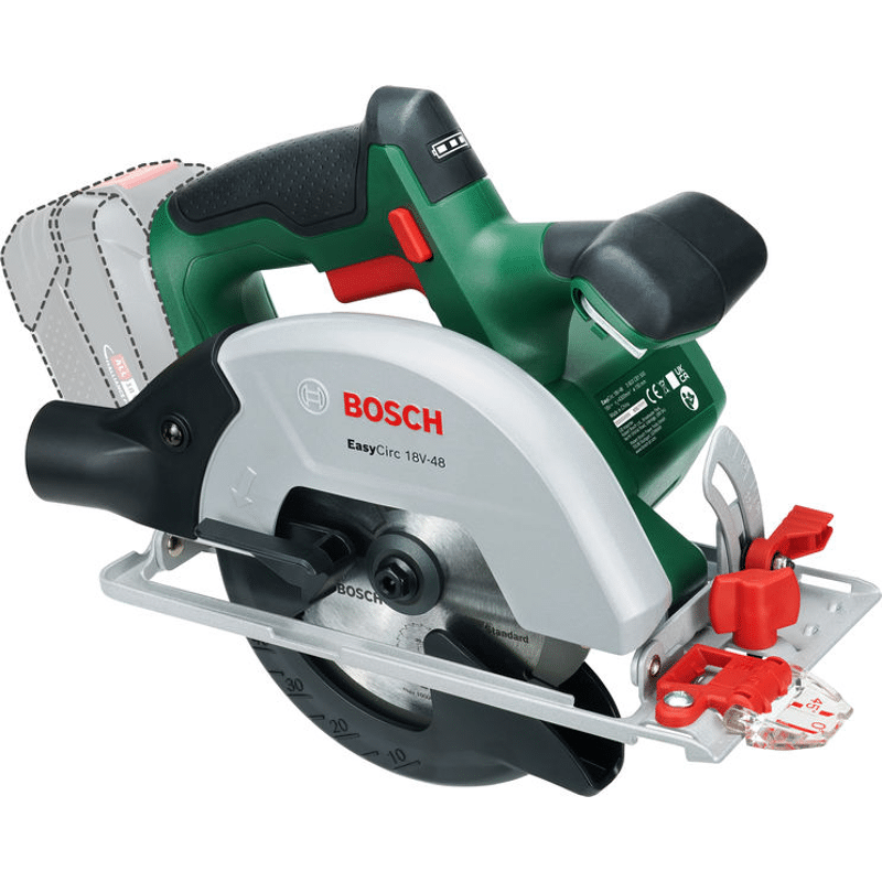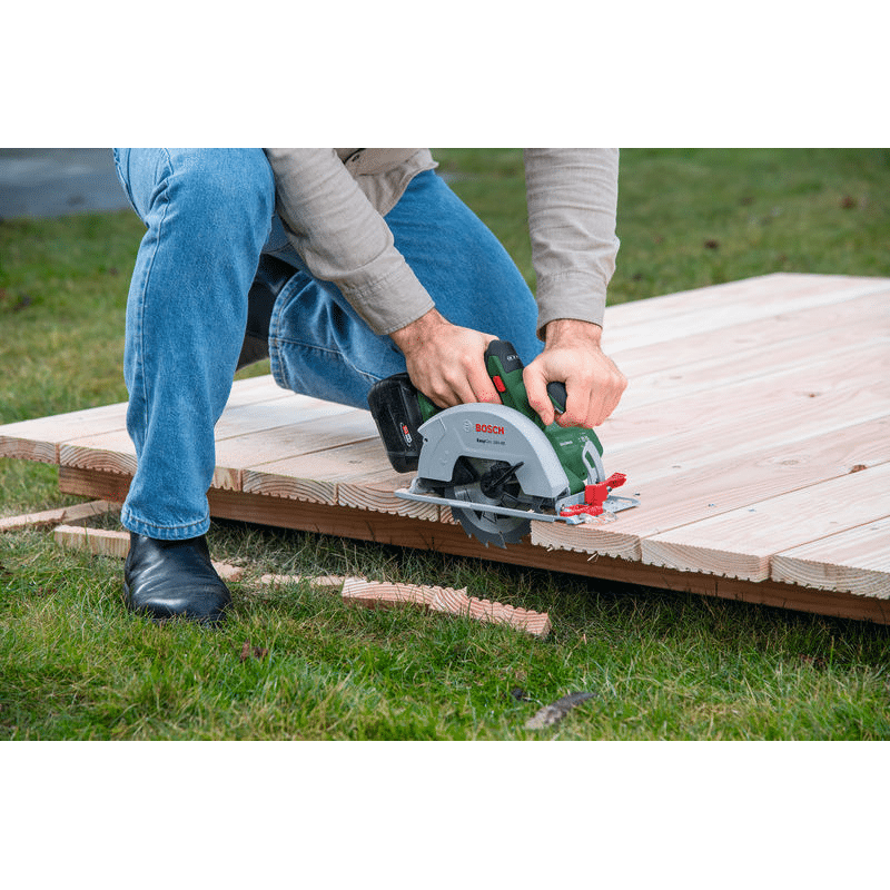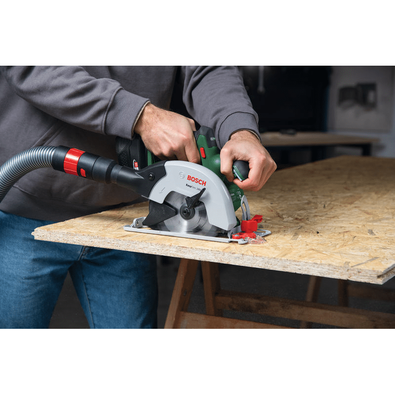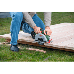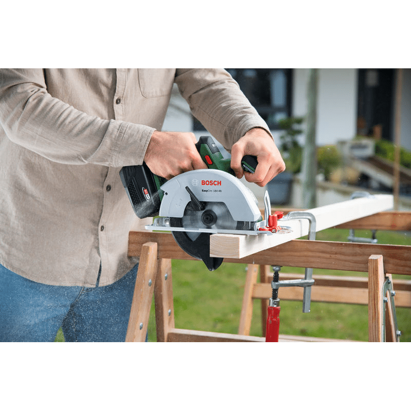 Akku-Kreissäge EasyCirc 18V-48. EasyCirc 18V-48: Zuverlässiges, leistungsstarkes Heimwerkerwerkzeug für präzises gerades Schneiden. Schneidet Holzwerkstoffe bis zu 48 mm, perfekt für alle gängigen Heimwerkeranwendungen. Einfache Tiefeneinstellung für präzise Schnitte mit jedem Mal. CutControl für einfaches Schneiden entlang einer geraden Linie. Das kompakte Design sorgt für einfache, sichere Handhabung und bessere Kontrolle. Mit einem 2,5-Ah-Akku kannst du bis zu 34 Meter in 19-mm-Spanplatten schneiden, ohne das Gerät aufzuladen. Kompatibel mit Bosch 18V POWER FOR ALL-Akku. Kartonschachtel