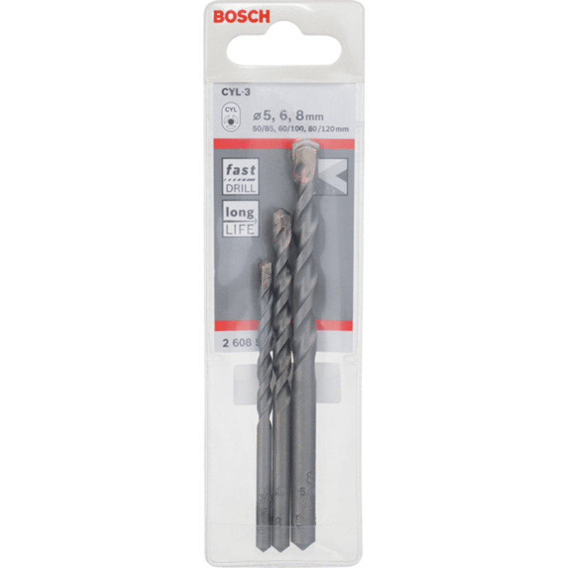 Der CYL-3-Bohrer bietet langanhaltende Leistung beim Bohren von Beton. Seine Widerstandsfähigkeit ergibt sich aus einer höchst robusten, speziell von Bosch entwickelten und hergestellten Carbide-Mischung. Die Mischung ist auf hohe Standfestigkeit ausgelegt und bietet höchste Verschleißfestigkeit bei Arbeiten in Beton. Darüber hinaus unterstützt das effektive zweispiralige U-Form-Design des Bohrers einen guten Bohrmehlabtransport. Dies reduziert Reibung, Wärmeentwicklung und Verschleiß, woraus sich eine verlängerte Lebensdauer ergibt. Der Bohrer bietet hohe Standfestigkeit bei Dübelbohrungen in abrasiven Materialien, wie beispielsweise Frischbeton und Naturstein. Als Qualitätsbeleg trägt der Bohrer das Qualitätstestzeichen von PGM Masonry Drill Bit Association Board, das Konformität mit strengen Toleranzen, präzises Bohren und einen festen Halt der Befestigungsmaterialien garantiert.