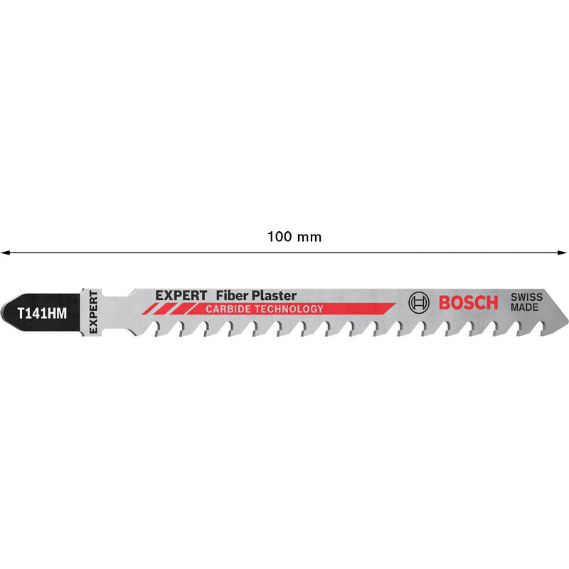 Herausragende Lebensdauer in abrasiven Baumaterialien! Große, konstante Zahnteilung für dicke, zähe Materialien Harte Materialien müssen mit einem robusten Stichsägeblatt bearbeitet werden, die Schnitte müssen aber trotzdem sauber sein. Abgenutzte Blätter erledigen die Arbeit nicht befriedigend. Daher ist das EXPERT Fibre Plaster-Blatt langlebig und qualitativ hochwertig. Seine Carbide-Zähne schneiden die abrasivsten Bauwerkstoffe wie Zementfaserplatten, Gipskartonplatten und glasfaserverstärkte Kunststoffe. Außerdem sorgen sie für maximale Produktivität. Das Bosch EXPERT Fibre Plaster-Stichsägeblatt wurde entwickelt, um Schnitte in die abrasivsten Materialien zu machen. Es ist die beste Wahl für Profis, die schwierige Aufgabe wie die Installation von Trockenbauwänden bewältigen müssen. Das Blatt ist in zwei Längenoptionen erhältlich: Das T141HM für maximale Kontrolle und das längere T341HM für dickere Werkstücke. Überragende Lebensdauer dank Bosch Carbide Technology