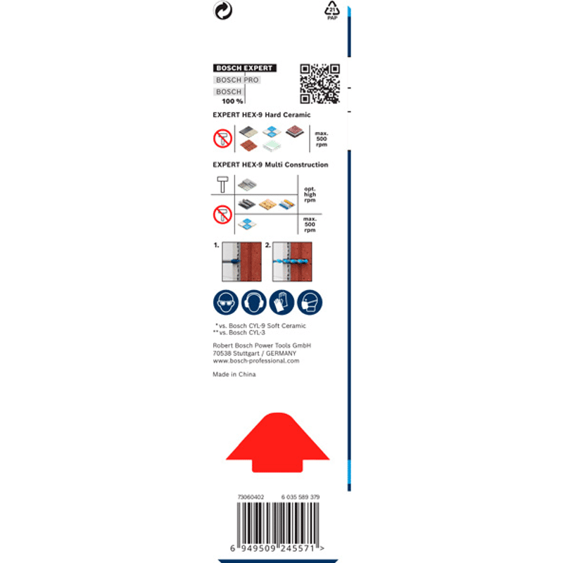 Lange Lebensdauer in Hartkeramik und Präzision in Baumaterialien! Präzises Anbohren von Löchern dank einer speziell konzipierten Zentrierspitze Beim Bohren in Fliesen können Sie das Loch präzise anbohren, ohne dass die teure Fliese Schaden nimmt. Sobald die Fliese durchbohrt ist,benötigst du für die darunterliegenden Werkstoffe einen Multimaterialbohrer. Für diese Aufgaben haben wir den Bohrersatz EXPERT HEX-9 Hard Ceramic und Multi Construction entwickelt, mit dem du beide Aufgaben problemlos bewältigen. Das Set mit EXPERT HEX-9 Hard Ceramic und Multi Construction enthält Bohrer, mit denen sich problemlos zwei grundverschiedene Aufgaben bewältigen lassen. Dank unserer Carbide Technology ist die EXPERT HEX-9 Hard Ceramic außergewöhnlich robust und langlebig: Damitkannst du auch die härtesten Keramikfliesen anbohren. Der EXPERT HEX-9 Multi Construction ermöglicht dank der Bosch Centering Geometry das präzise Anbohren aller gängigen Baumaterialien hinter den Fliesen – damit kannst du die Löcher genau dort bohren, wo sie sein sollen. Außergewöhnlich ausdauernder Bohrer mit Bosch Carbide Technology