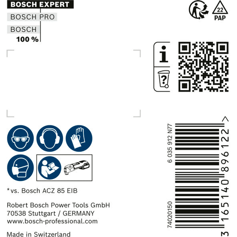Lange Lebensdauer beim Schneiden von abrasivem Material und Verbundwerkstoffen! Dickeres Blatt für zusätzliche Robustheit und Stabilität Backstein und Zement hinter einem Türrahmen oder unter einer Diele brachte die Arbeit früher oft zum Stillstand. Ein teurer Blattwechsel war notwendig. Nicht mit dem EXPERT ACZ 105 ET Multi Material, einem Sägeblatt, das robust genug ist, um Fugenmörtel und Mörtel, aber auch Arbeitsplatten mit fester Oberfläche und abrasive Laminate und Verbundwerkstoffe zu schneiden. Es macht einfach weiter. Das EXPERT ACZ 105 ET Multi Material-Segmentsägeblatt für Multifunktionswerkzeuge ist ein weiterer Fortschritt in der Bosch Carbide-Technologie: Zum ersten Mal wurde ein großer gebogener Carbide-Streifen fest mit einem Blatt für Multifunktionswerkzeuge verschweißt. Es bietet die höchste Präzision und Lebensdauer unter den Segmentblättern. Überragende Lebensdauer dank Bosch Carbide Technology