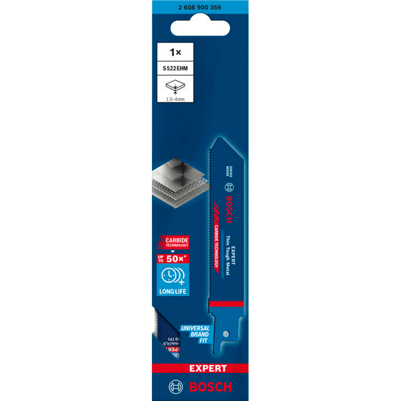 Herausragende Lebensdauer in dünnem, zähem Metall! Extrafeine Zähne schneiden sehr dünnes Material problemlos Das Schneiden von dünnem Blech und dünnwandigen Rohren ist eine schwierige Aufgabe. Mit einem guten Säbelsägeblatt ist dies allerdings möglich. Die wirklichen Probleme beginnen, wenn du Edelstahl schneiden musst. Dieser zähe, hochlegierte Stahl stellt Bau- oder Renovierungsarbeiter vor Schwierigkeiten und zerstört die Blätter häufig. Dank der Bosch Carbide Technology gehören diese Probleme der Vergangenheit an. Das Bosch EXPERT Thin Tough Metal -Säbelsägeblatt eignet sich ideal für Metallarbeiter, Klempner, Installateure und Renovierer. Es erledigt nicht nur Arbeiten, die bisher so gut wie unmöglich waren, sondern bietet auch eine außergewöhnliche Lebensdauer. Überragende Lebensdauer dank Bosch Carbide Technology