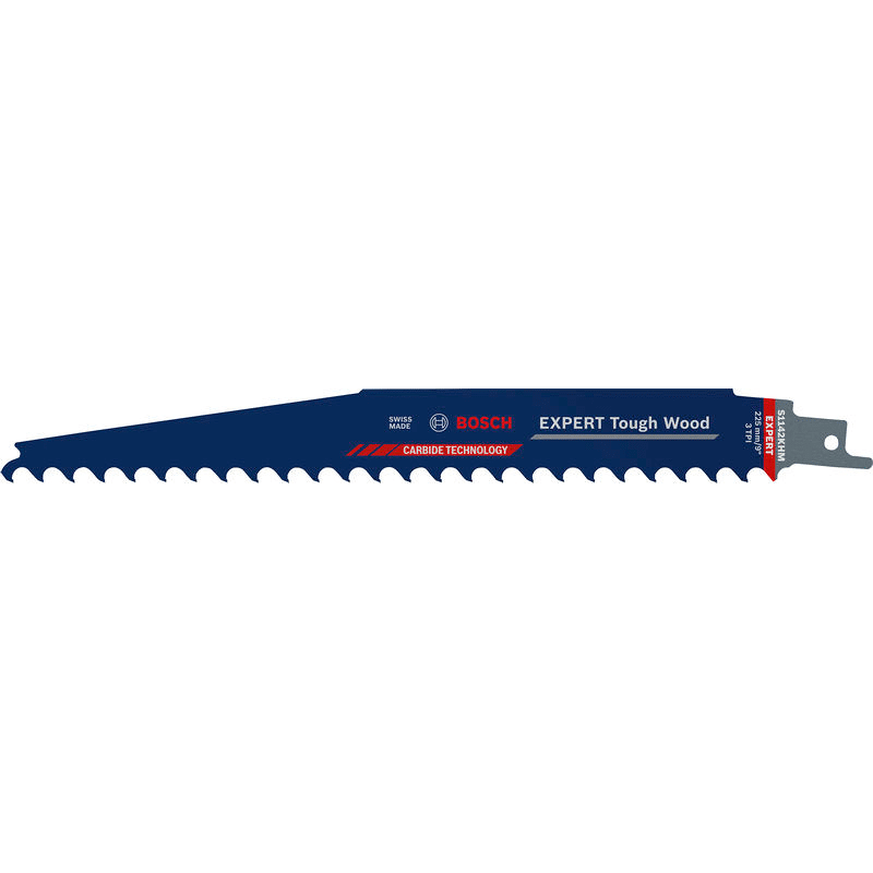 Herausragende Lebensdauer in zähem Holz! Die konische Spitze gelangt besser an schwer zugängliche Stellen Es gibt Weichholz, es gibt Hartholz – und dann gibt es diese zähen Hölzer, die Sägeblätter zerstören und für Frustration sorgen. Nasses Holz, dicke, druckbehandelte Bretter und verknotete lebende Wurzeln oder dicke Äste fallen in diese unangenehme Kategorie. Die gute Nachricht: Das EXPERT Tough Wood kann sie alle schneiden. Vor allem Landschaftsgestalter, Tischler und Handwerker werden das Bosch EXPERT Tough Wood -Säbelsägeblatt zu schätzen wissen. Es ist so zäh und langlebig, dass du Wurzeln schneiden kannst, um Bäume und Hecken zu entfernen, ohne dich um den Boden und die darin liegenden Steine kümmern zu müssen. Überragende Lebensdauer dank Bosch Carbide Technology