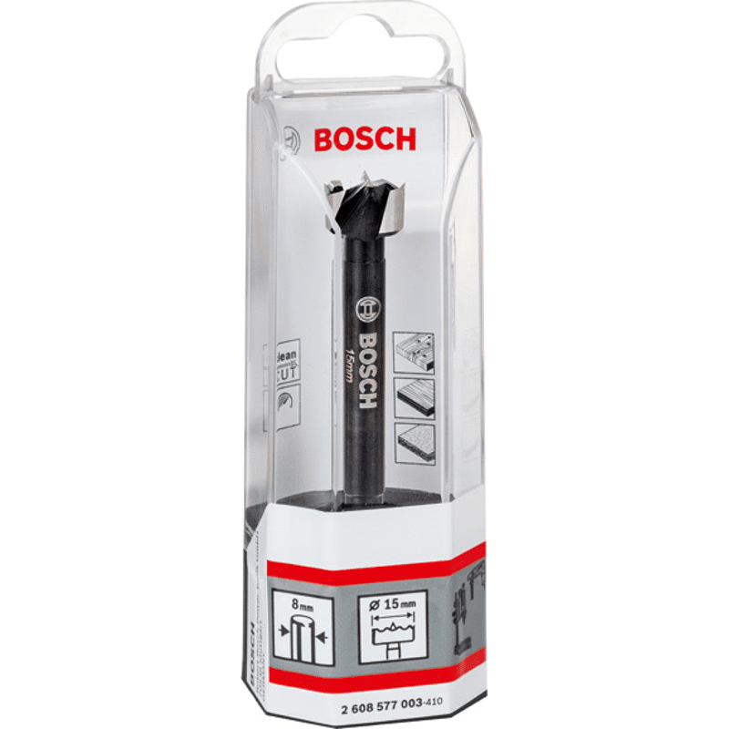 Der Forstnerbohrer besitzt eine hervorragende Lebensdauer beim Bohren von Präzisionslöchern. Das zahnförmige Design sorgt für weniger Reibung und Hitze, woraus sich eine höhere Haltbarkeit ergibt. Die kurze Zentrierspitze des Präzisionsbohrers hat zwei Hauptschnittkanten und eine Peripherschnittkante (zahnförmig) für exakte Ergebnisse. Durch die großen spänefreien Zonen, die einen optimierten Späneabtransport ermöglichen, wird die Schnellbohrpräzision des Bohrers weiter unterstützt. Er ermöglicht ein glattes, splitterfreies Bohren von Blindlöchern sowie das Bohren an Kanten und Schrägen, z. B. für die Befestigung von Scharnieren, das Dübeln oder Entfernen von Astlöchern. Für das Bohren in Weich- oder Hartholz, Furnierholz und nicht laminierte Spanplatte. Der 3-seitige Schaft des Forstnerbohrers verhindert ein Durchdrehen im Spannfutter. Er ist gemäß DIN 7483G hergestellt, mit einer Schneidenhärte von mindestens 50 HRC.