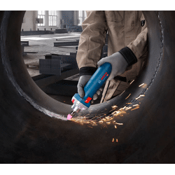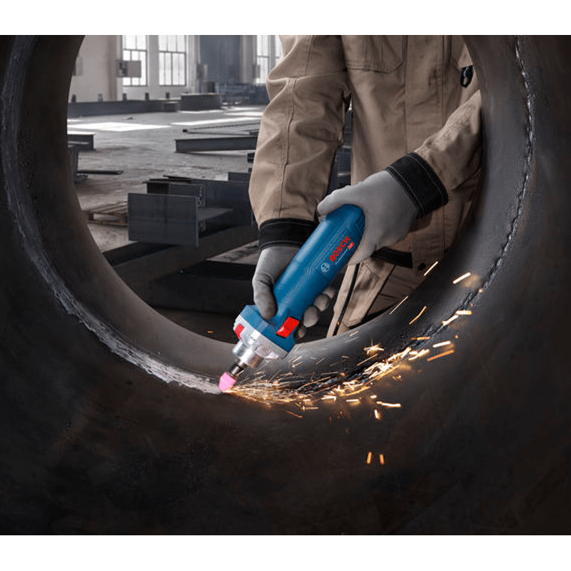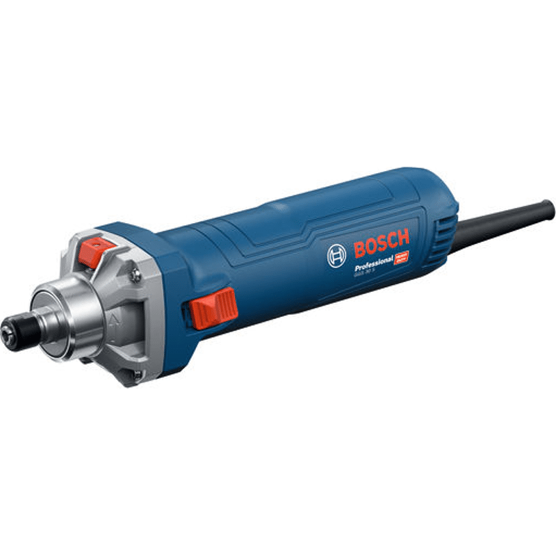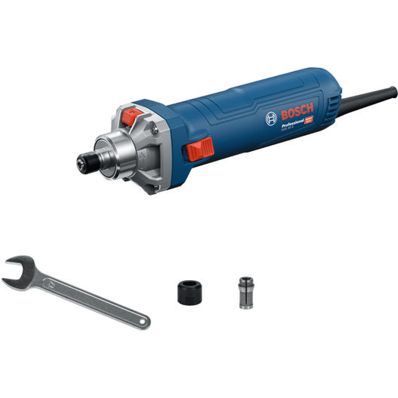 Geradschleifer GGS 30 S, Der GGS 30 S Professional ist ein leistungsstarker Geradschleifer für optimalen Komfort und Sicherheit. Das Hochleistungswerkzeug ist mit einem starken 750-Watt-Motor für höchste Effizienz ausgestattet. Mit der Drehzahlvorwahl für unterschiedliches Schleifzubehör und verschiedene Materialien lassen sich Präzisionsarbeiten problemlos ausführen. Durch die praktische Funktion der Spindelarretierung kann das Zubehör ohne Spannschlüssel gewechselt werden. Dank seines kurzen Halses kann dieses Werkzeug auf eine CNC-Maschine montiert und als Fräsgerät verwendet werden. Der GGS 30 S liefert eine Drehzahl bis 33.000 min⁻¹ für schwere Schleifaufgaben. Er ist das Werkzeug der Wahl zum Polieren von Metall, Entgraten von Oberflächen und für den Materialabtrag. Weitere Designmerkmale sind ein ergonomischer Griff in komfortabler Größe, KickBack Control, Sanftanlauf und Wiederanlaufschutz. 1 x Spannschlüssel (1 619 P21 169). Spannzange 6 mm (2 608 570 084)