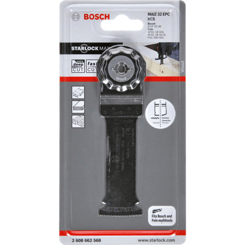 Das Tauchsägeblatt Starlock MAIZ 32 EPC ermöglicht besonders tiefe Schnitte in Holz. Seine Länge von 80 mm erhöht die Reichweite für ausgedehnte Schnitte. Die direkte Kraftübertragung und das robuste Starlock-Aufnahmesystem reduzieren Lateralschwingung und ermöglichen längere präzise Schnitte. Mit diesen robusten Merkmalen ist dieses Produkt ideal geeignet für tiefe Tauchschnitte in Holz und Holzbalken sowie zum Anfertigungen von Aussparungen für Zapfen und Verbindungen. Das Blatt durchschneidet auch massives Weichholz. Eine abgerundete Blattspitze (Curved-Tec) ermöglicht präzise und glatte Tauchschnitte. Das System Starlock Max ermöglicht selbst bei härtestem Einsatz maximale Schnitttiefe, Geschwindigkeit und Vielseitigkeit. Zusätzlich ermöglicht das Starlock-Aufnahmesystem schnellen Blattwechsel in drei Sekunden ohne Blattberührung. Das spezielle Starlock-Aufnahmesystem ermöglicht durch seine dreidimensionale enge Passung maximale Kraftübertragung zwischen Maschine und Zubehör.