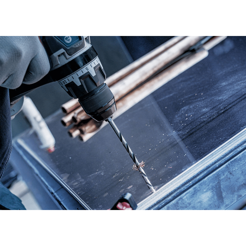 Der HSS-Spiralbohrer PointTeQ ermöglicht schnelles Bohren in Metall aufgrund des PointTeQ-Designs an der Bohrspitze. Schnelles und einfaches Anbohren ist möglich, da die selbstzentrierende Spitze Wandern verhindert. Aufgrund der erhöhten Bohrrate werden weniger Hitze und Verschleiß erzeugt. Das PointTeQ-Design an der Bohrspitze bleibt scharf und hält Dauereinsatz stand. Dieser Bohrer ist zum Bohren von Durchgangs- und Zentrierlöcher in legierten und unlegierten Stahl, in Nichteisenmetalle, Gussstahl, Gusseisen und Kunststoff. Es besteht ein niedriges Bruchrisiko, besonders für Bohrer mit einem Durchmesser unter 6 mm, da der Bohrer so hergestellt wurde, dass er einen hochelastischen Körper hat. Die mit Schwarzoxid beschichtete Nut ermöglicht eine schnelle Entfernung der Späne. Der HSS-Spiralbohrer PointTeQ ist gemäß DIN 338 hergestellt. Der Bohrer ist Typ N (kleiner Seitenspanwinkel) mit einem Spitzenwinkel von 135 Grad.