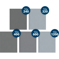 Schleifen harter Oberflächen mit hoher Geschwindigkeit! Silizium-Carbide-Körnung für Geschwindigkeit und Qualität Du bist Maler und auf der Suche nach einem langlebigen Schleifblatt, mit dem du deine Produktivität steigern und deinen Kunden schneller überzeugende Ergebnisse liefern kannst? Dann ist diese PRO C355 die richtige Wahl: Sie schleift schneller als herkömmliche Schleifmittel. Das PRO C355 Schleifblatt wurde mit starken Silizium-Carbide-Körnern versehen, damit du schneller beste Ergebnisse erzielst.