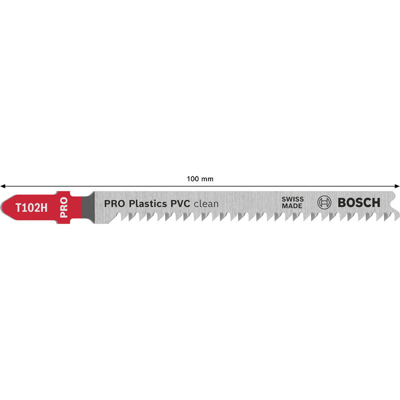 Präzises Schneiden von Kunststoffen! Konisch geschliffener Blattkörper für feine, saubere Schnitte Das Schneiden von thermoplastischem Material verlangt nach einem scharfen und effizienten Stichsägeblatt, das die Hitze reduziert und das Schmelzen des Materials verhindert. Wir haben das PRO Plastics PVC clean T102H entwickelt, damit du saubere Schnitte in nicht abrasiven thermoplastischen Platten, Rohren und Profilen ausführen kannst. Das PRO Plastics PVC clean T102H Stichsägeblatt ist eine gute Wahl für Handwerker, die thermoplastische Materialien schneiden müssen. Es wurde aus Kohlenstoffstahl (HCS) hergestellt und mit einem konischen Körper sowie fein abgestuften, geschliffenen Zähnen versehen, damit du saubere Schnitte ohne kontinuierliche Spanbildung oder Schmelzmaterial erhältst. Schneide damit Platten, Rohre und Profile aus PVC (Polyvinylchlorid) mit einer Dicke von bis zu 30 mm.