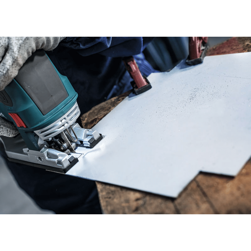 Herausragende Lebensdauer beim Schneiden von Edelstahl! Bi-Metall Blatt: Kombiniert harte Zähne mit flexiblem Blattkörper Du bist Metallbauer und benötigst ein zuverlässiges und langlebiges Stichsägeblatt zum Schneiden von massiven und perforierten Edelstahlblechen? Mit dem PRO Stainless Steel T118GFS kannst du die Arbeit erledigen – immer und immer wieder. Das PRO Stainless Steel T118GFS Stichsägeblatt ist eine langlebige Ergänzung für jede Metallwerkstatt. Es wurde aus BI-Metall hergestellt Es verfügt über eine Zahnleiste aus Schnellarbeitsstahl (HSS), die mit einem elastischeren Körper aus Kohlenstoffstahl (HCS) verbunden ist. Das bedeutet, dass es über die Stabilität und Flexibilität verfügt, die du für die Bearbeitung von Edelstahl benötigst. Wir haben sichergestellt, dass die gefrästen, gewellten Zähne mit feiner Zahnteilung Edelstahlbleche zwischen 0,5 und 1,5 mm effektiv schneiden.