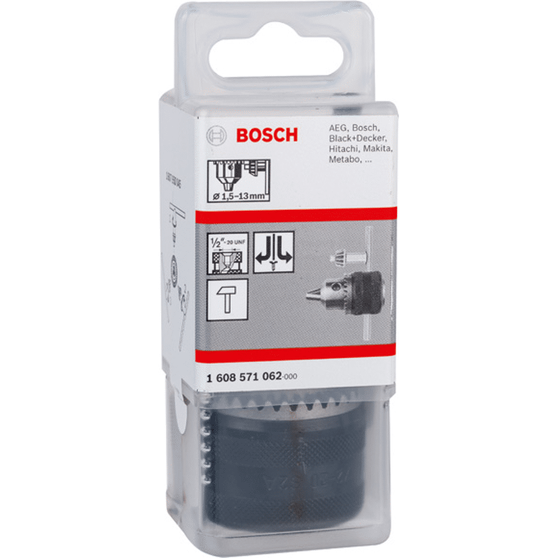 Das Zahnkranzbohrfutter ist eine einfache und zuverlässige Lösung zum Befestigen von Bohrern für beliebige Arbeiten. Es bietet eine gleichmäßig starke Einspannkraft zum sicheren Befestigen von Zylinder- oder Sechskantschaftbohrern. Die Backen lassen sich bequem mit einem Schlüssel anziehen und lösen. Zahnkranzbohrfutter sind für verschiedene Aufnahmen (1/2" - 20, 3/8"- 24, 5/8" - 16, B16 und SDS plus) mit einer Vielzahl von Weiten verfügbar und mit den meisten gängigen Bohrern kompatibel. Informationen zur Schlagfestigkeit oder zur Eignung für die Drehung gegen den Uhrzeigersinn finden Sie in den technischen Daten.