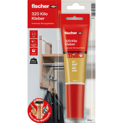 Pure Kraft. Der fischer 320 Kilo Kleber ist genau richtig, wenn etwas extrem viel und dauerhaft halten muss. Selbst das Verkleben von Garderoben - an die schwere Jacken gehängt werden - ist damit kein Problem. Befestigen ohne zu bohren und trotzdem eine hohe Performance erbringen: Eine Aufgabe, die der 320 Kilo Kleber von fischer löst. Der flexible Einsatz des 320 Kilo Kleber befestigt Steine, Regale, Schlüsselbretter und Sockelleisten. Mit der Fugenspitze der Tube lässt sich der Klebstoff präzise aufbringen.
