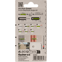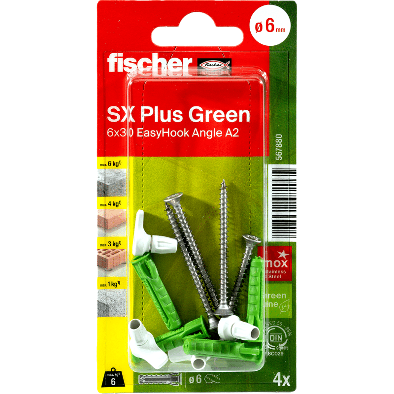 Das innovative Hakensortiment verwandelt Schrauben in Rund-, Ösen- oder Winkelhaken. Der Hakenadapter wird auf die Senkkopfschraube aufgesteckt und mit dem DuoPower, oder ohne Dübel für die Anwendung in Holz, schnell und sicher in der Wand montiert. Aufgrund des glasfaserverstärkten Kunststoffs können die Haken hohe Lasten aufnehmen und sorgen für einen sicheren Halt. Durch die Sollbruchstelle wird der Haken optimal positioniert und kann mit variierbaren Wandabständen montiert werden. Eine zusätzliche Abdeckkappe und Abdeckring sorgen im sichtbaren Bereich für ein optisch ansprechendes Design. Bei Bedarf können die Haken mittels Akkuschrauber schnell und einfach demontiert werden.