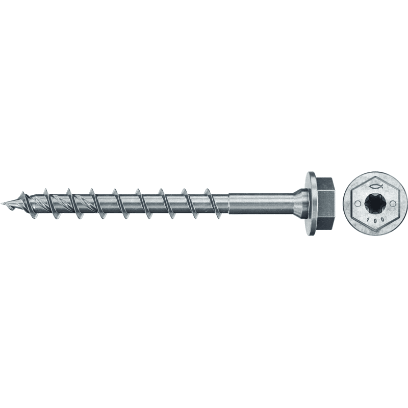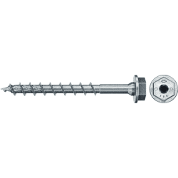Die fischer Holzbauschraube PowerFast FPF II-HWTF BC ist die kraftvolle Holzbauschraube mit Sechskantkopf und Innenstern-Aufnahme für den konstruktiven Holzbau. Die Holzbauschraube ist die schneller zu verarbeitende Alternative zu Schrauben nach DIN 571. Der Sechskantkopf ermöglicht die Verwendung von Stecknüssen, alternativ garantiert der Innenstern-TX-Antrieb höchste Kraftübertragung bei maximaler Bitstabilität. Das Gewinde ermöglicht das feste Anbinden von Metallelementen an Holz. Die Europäische Technische Bewertung garantiert ein zusätzliches Plus an Sicherheit. Die PowerFast II ist durch die Gewindeform besonders leicht ohne Vorbohren einzuschrauben. Das PowerFast II-Gewinde reicht bis in die Schraubenspitze und sorgt für schnellen Anbiss.