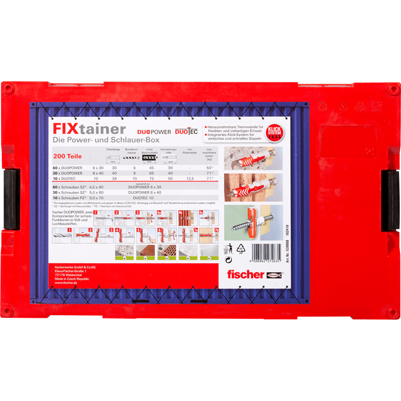 Der FixTainer DuoPower / fischer DuoTec mit Schraube enthält die neuen DuoLine Produke - den fischer DuoPower und DuoTec mit passenden Schrauben.