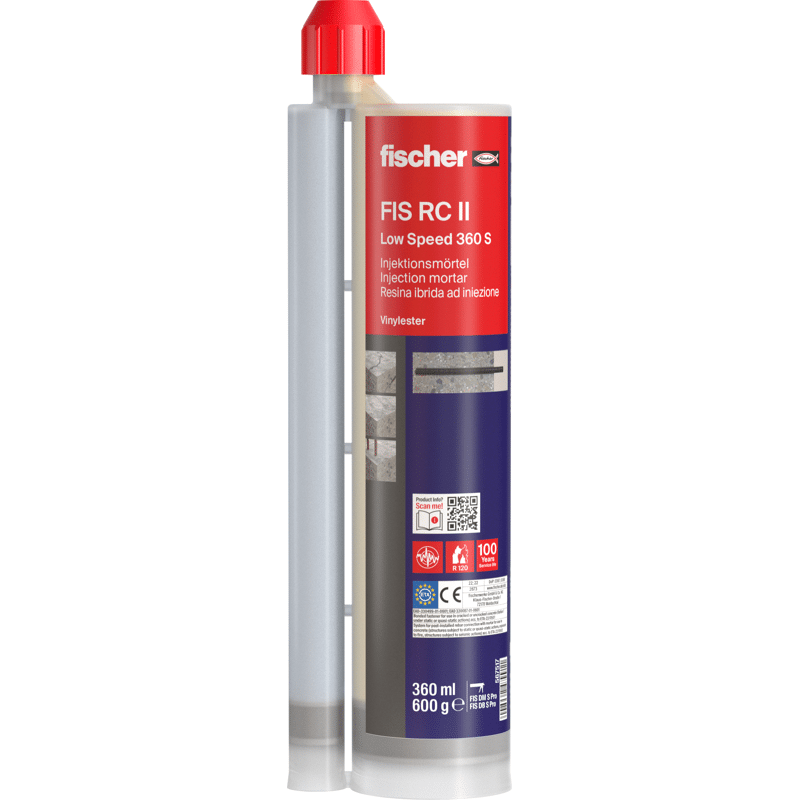 Der fischer Injektionsmörtel RebarConnect FIS RC II ist die wirtschafliche Wahl für nachträgliche Bewehrungsanschlüsse. Mit dem Injektionssystem können Bewehrungsanschlüsse ø 8-40 mit einer Verankerungstiefe bis 2 Meter ausgeführt werden. In Kombination mit dem passenden Hohlbohrer entfällt die Bohrlochreinigung als zusätzlicher Arbeitschritt für eine schnelle Montage. Die Verarbeitung des FIS RC II ist von -10°C bis +40°C in der ETA geregelt.