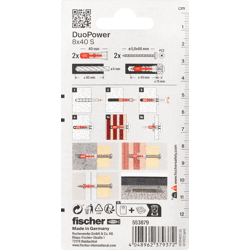 • Beinhaltet 2 fischer DuoPower 8 x 40, 2 A2-Edelstahl Spanplattenschrauben mit Panhead 5,0 x 60.