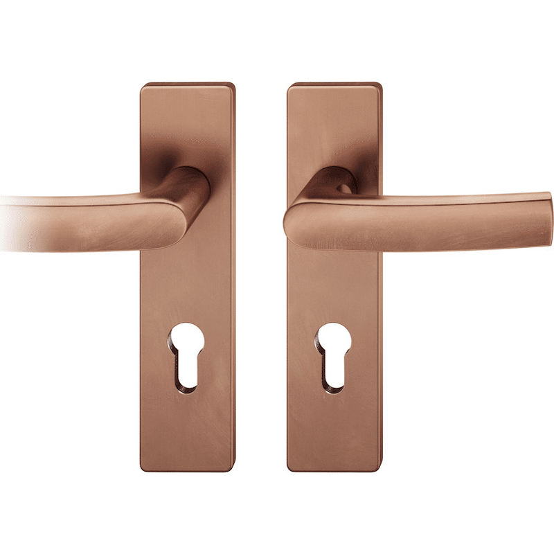 ASL Drückergarnitur 8mm RZ 78, Kurzschild eckig, max. 45°. TS 39-58mm, Bronze hell patiniert gew.