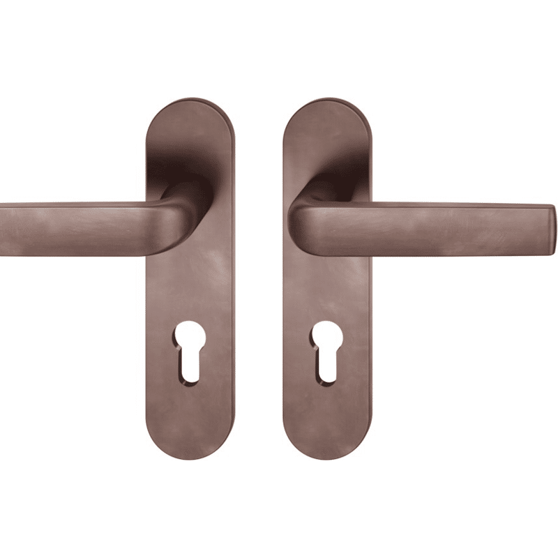 ASL Drückergarnitur 8mm PZ 72, Kurzschild oval, max. 45°. TS 39-58mm, Bronze dunkel patiniert gew.