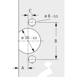 Die Glastüren erhalten je Scharnier eine angeschnittene Bohrung für den Scharniertopf und zwei Bohrungen für die Befestigungsschrauben