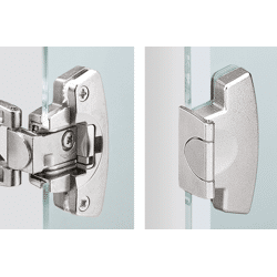 Die Scharniere Selekta Pro 2000 und Selekta Pro 2035 können mit diesen Zierkappen als Glastürscharniere eingesetzt werden