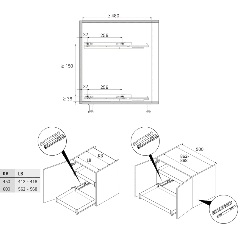 • Innenauszug zur Montage zwischen den Korpusseiten