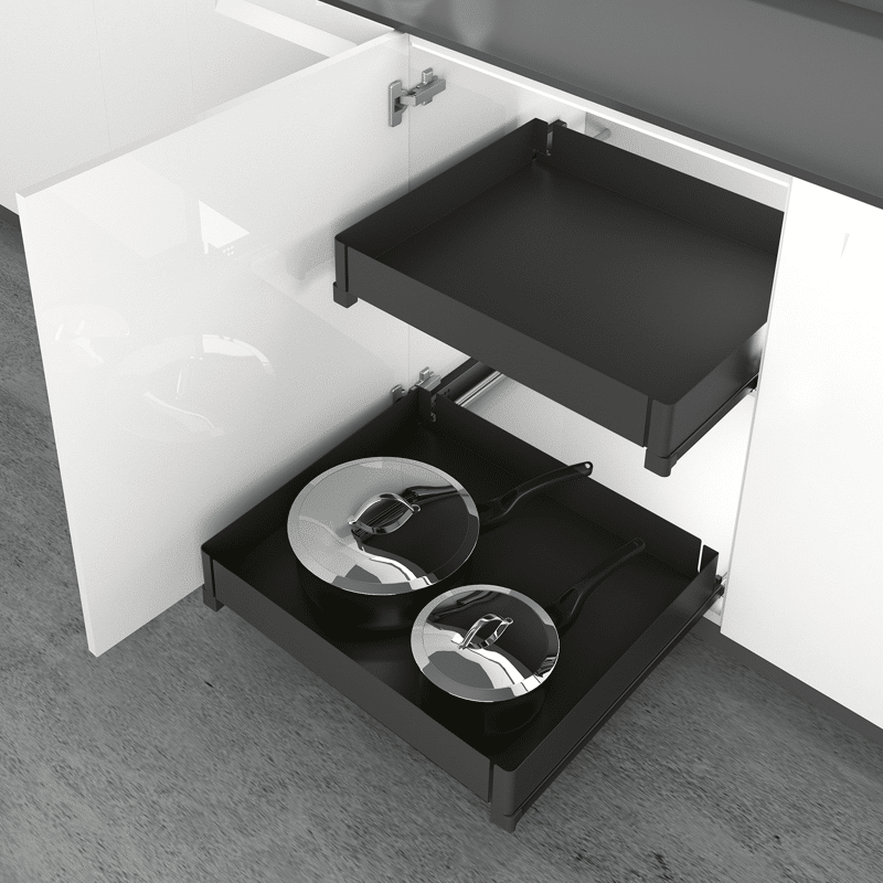 • Innenauszug Stahl pulverbeschichtet, Distanzleisten und Antirutschmatte Kunststoff anthrazit