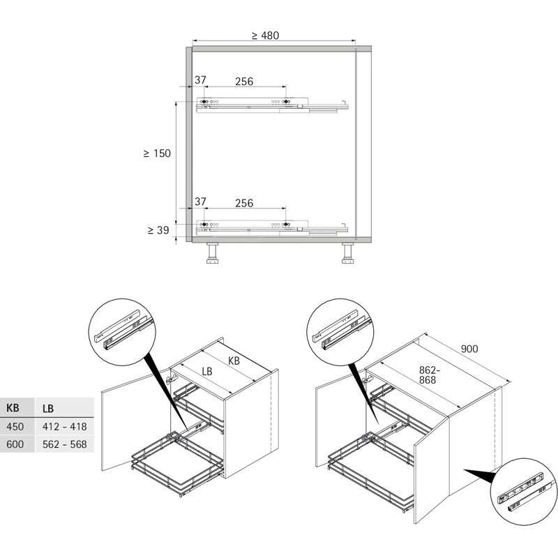 • Innenauszug zur Montage zwischen den Korpusseiten