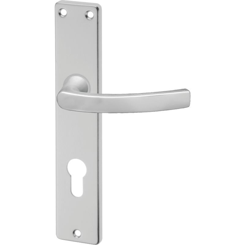 Langschild-Drückergarnitur der Linie 45 mit kantigem Schild. Aus Aluminium für Innentüren.