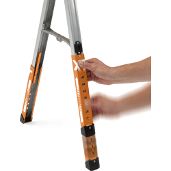 • Nicht sequenzielles Zusammenklappen der Beine – Der Abbau der Böcke erfolgt ganz einfach: Ziehen Sie an den Hebeln an beiden Enden und klappen Sie die Beine zusammen – die Reihenfolge spielt dabei keine Rolle.